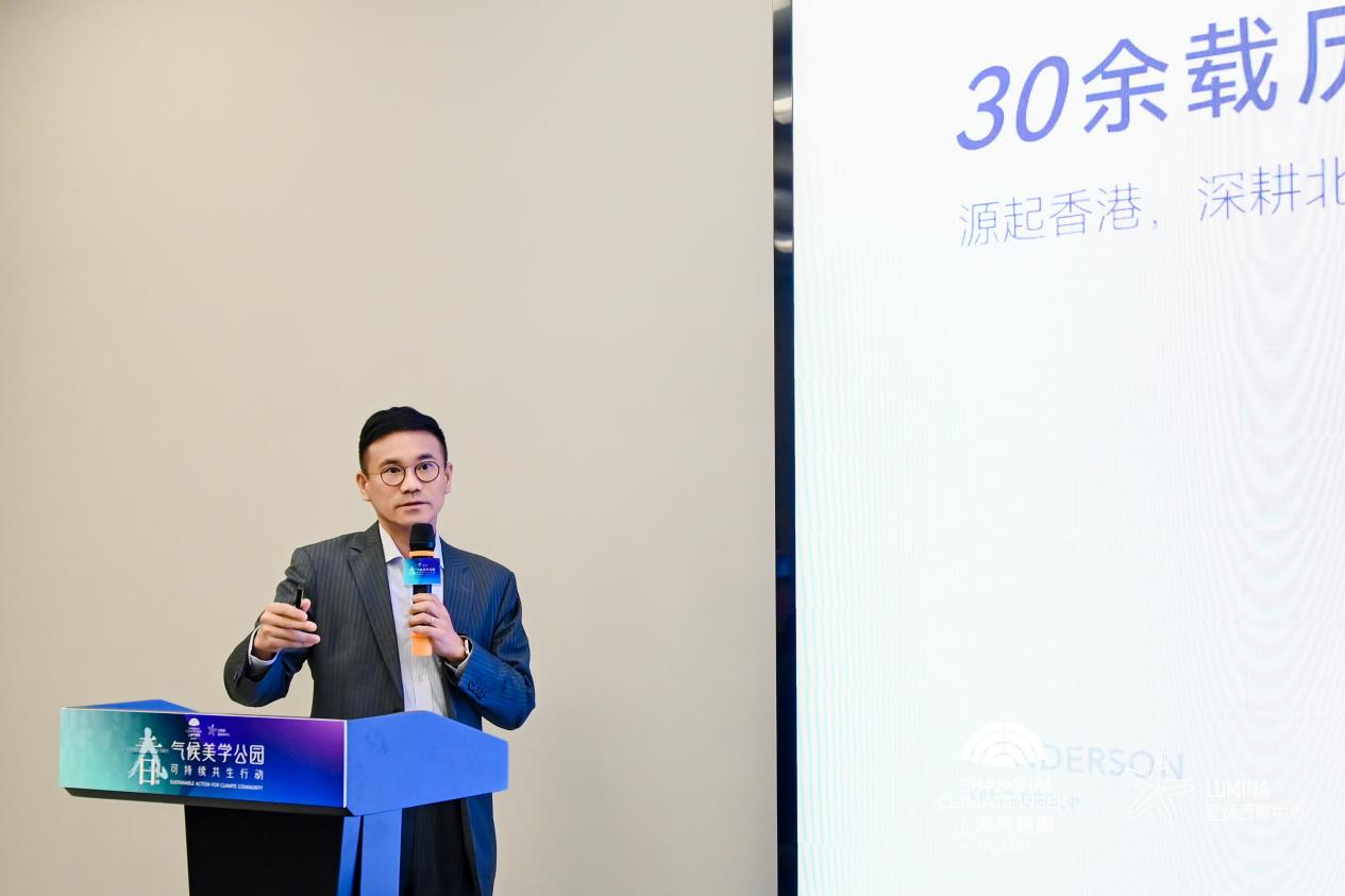 Gensler 大中华区可持续与弹性设计总监倪江涛、携程集团可持续发展项目总监倪佳琛、Dr.inB 集团副总裁朱懿分别从可持续设计的全域影响力、可持续旅行的创新、生物多样性的绿色守护链这三个视角,分享了通过商业实践拥抱低碳生活的精彩观点。来自港华能源投资有限公司的助理副总裁郭甲生先生,分享以城市能源韧性为题,交流了通过再生能源投资及智慧能源生态平台搭建,进行能效管理、碳管理以及绿电交易,推动可持续发展的创新实践。