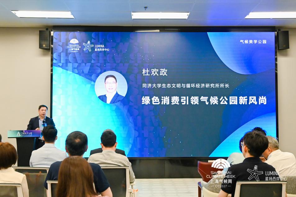 来自同济大学生态文明与循环经济研究所所长杜欢政在演讲中表示,绿色消费已经成为推动经济增长的重要力量,在这个背景下,气候公园应成为消费者理念转变的重要场所,也成为品牌和消费者沟通的一个桥梁。期待借助恒基中国上海项目商业空间里的实验,从“外表绿”到“内容绿”,创建出气候公园新场景,带动绿色经济的新消费、新教育和新文明。