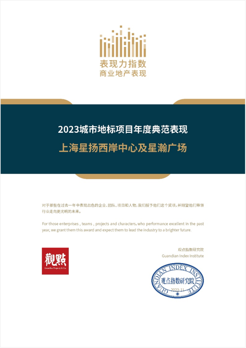 恒基中国上海项目以高品质获得诸多荣誉见证——恒基中国获“ESG评分行业最佳进步企业奖”,多项目获RICS年度可持续发展奖、WELL HSR认证与TRUE零废弃物认证。运维发展层面,星扬西岸中心及星瀚广场获得 “2023城市地标项目年度典范表现”荣誉,充分彰显项目商业与社会双重价值。