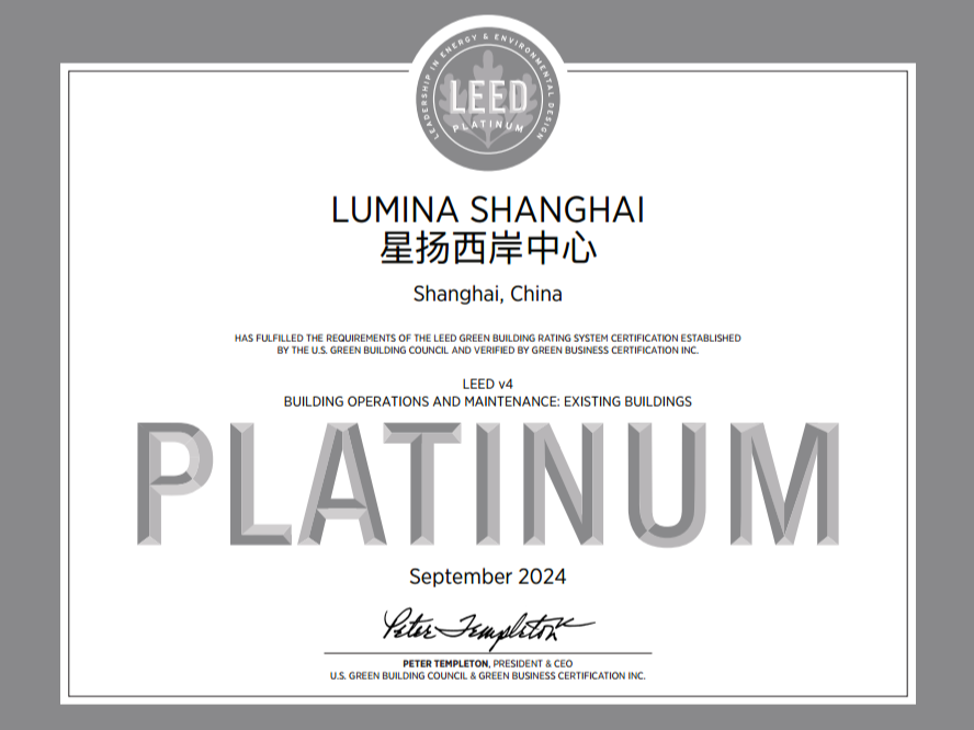 (2025年1月14日,上海)随着全球环保意识和可持续发展理念的深入人心,绿色建筑作为人与自然和谐共融的重要纽带,正逐步成为城市发展的新典范。近日,星扬西岸中心与星瀚广场凭借其在绿色建筑领域的杰出贡献,荣膺LEED V4 O+M铂金级认证,同时以104傲人成绩刷新了截止2024年底LEED O+M体系底下的高分记录。这一殊荣既是对项目同仁将绿色、环保、健康的可持续发展理念,渗透执行至规划、运营及服务细节的工作肯定;更是恒基中国有机交融绿色动能与ESG理念的重要进展。