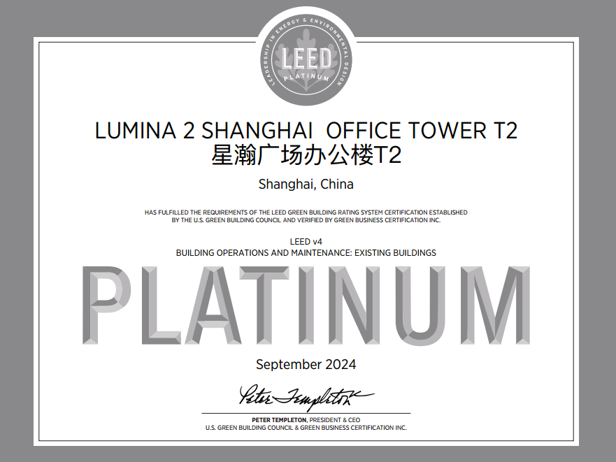 星扬西岸中心LEED v4 O+M铂金级认证颁证仪式
