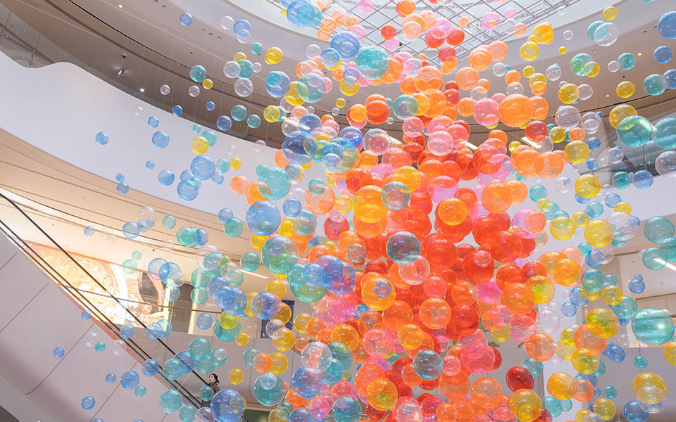 恒基中国打造“Walking On Air 空气漫步:艺术随行”公益艺术主题活动 ,联手全球知名气球艺术团队DAISY BALLOON创作系列艺术作品之「传递」、「汇聚」分别亮相于星扬西岸中心及星瀚广场。通过多彩的气球、光线的变化描绘个人的成长、探索,传播快乐与希望,「传递」以多彩气球在空中搖曳,光线分离后形成悬浮的星光,象征个体的成长与探索,传播和扩散希望与乐观的力量;「汇聚」通过建筑与周围环境融为一体,扩展的光线带着一种新的流动重新聚集在一起,将不同的世界融合在一起。